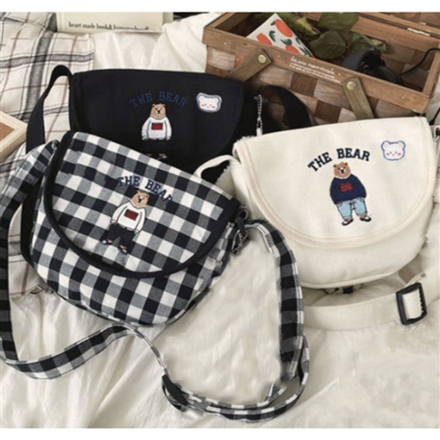 곰돌이 미니크로스백 학생크로스백 여성 캐주얼 여행용 캔버스백